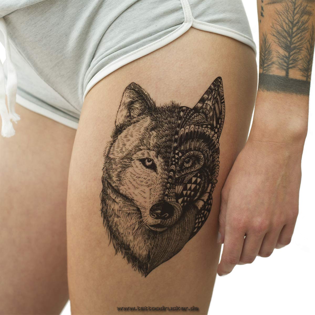 2 X Wolf Xl Tattoo Wolf 2 Gesichter Schwarzes Body Temporary Tattoo Lc607 2 Amazon De Kosmetik Parfums Hautpflege